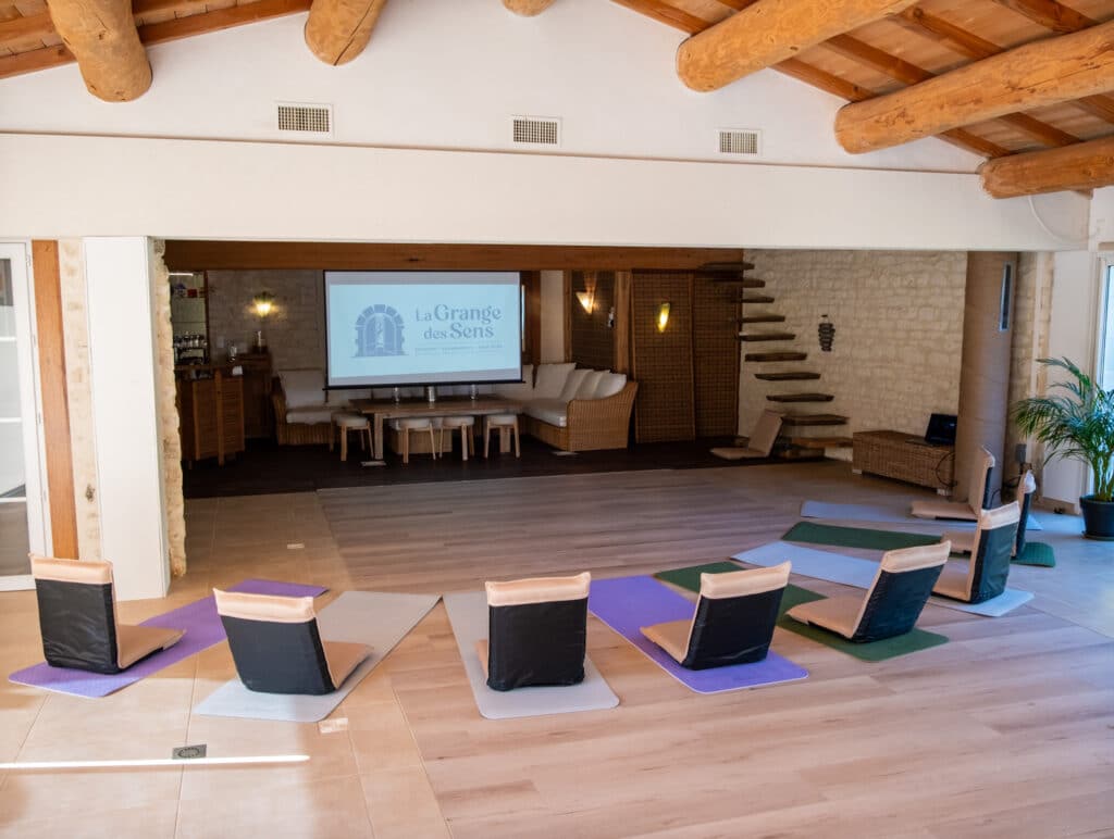 Sa disposition présente l’avantage d’un espace traversant offrant une luminosité naturelle douce et très agréable pour les ateliers liés aux retraites « bien être » aux diverses disciplines de travail du corps, aux conférences, aux séminaires…